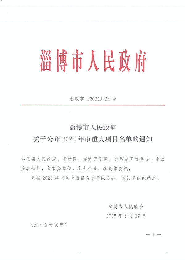 重磅!米兰注册_米兰(中国)旗下山东超滤环境科技项目入选淄博市2025年重大项目名单